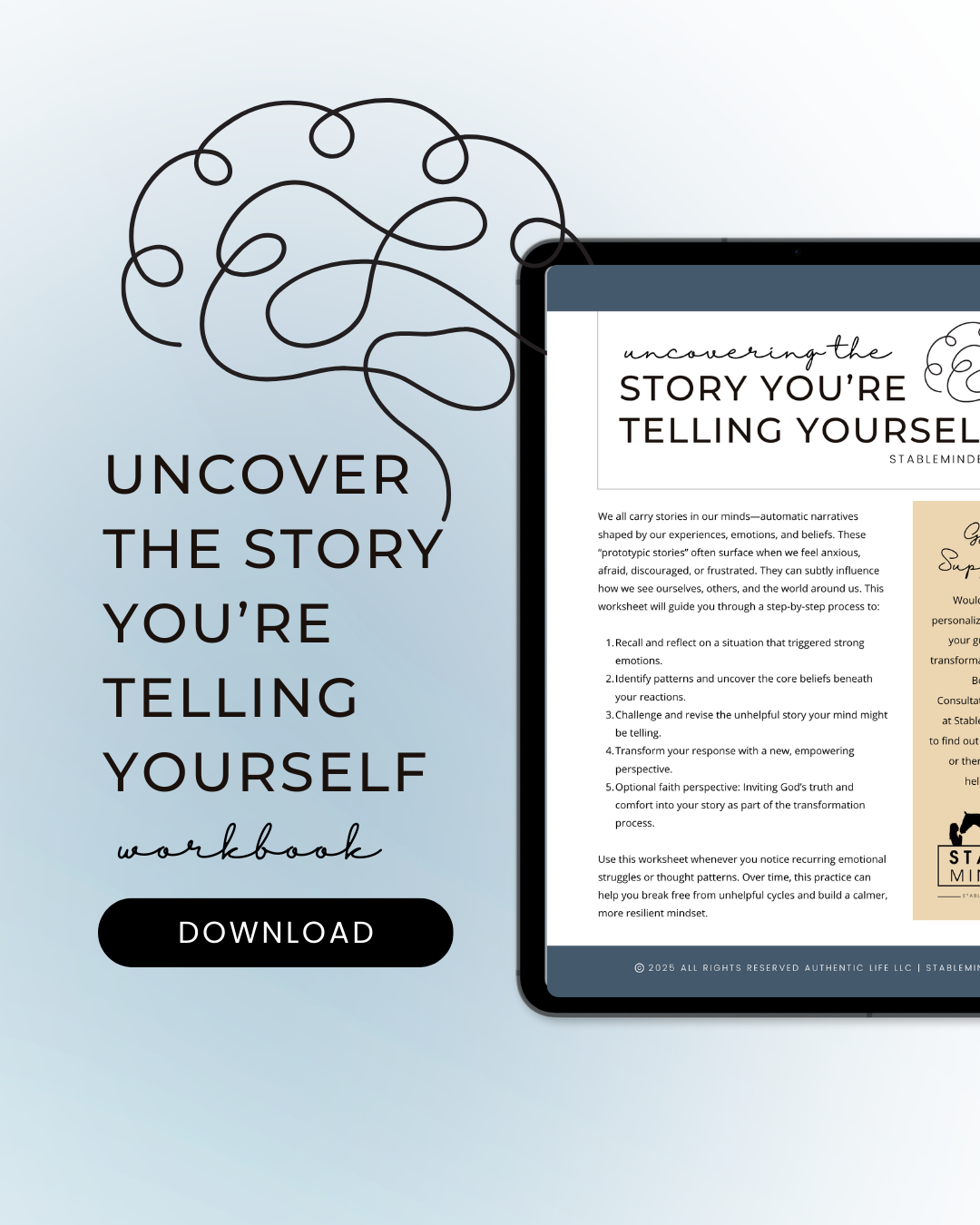 We all carry stories in our minds—automatic narratives shaped by our experiences, emotions, and beliefs. These “prototypic stories” often surface when we feel anxious, afraid, discouraged, or frustrated. They can subtly influence how we see ourselves, others, and the world around us. This workbook will guide you through a step-by-step process to help you break free from unhelpful cycles and build a calmer, more resilient mindset.